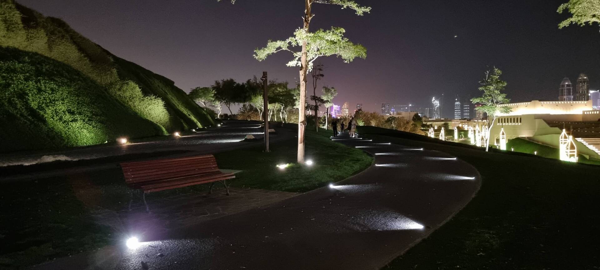 Katara Hills is considered one of the largest public parks in Doha. Hundreds of trees from different parts of the world have been grown in the hills, lightened to look spectacular at night.