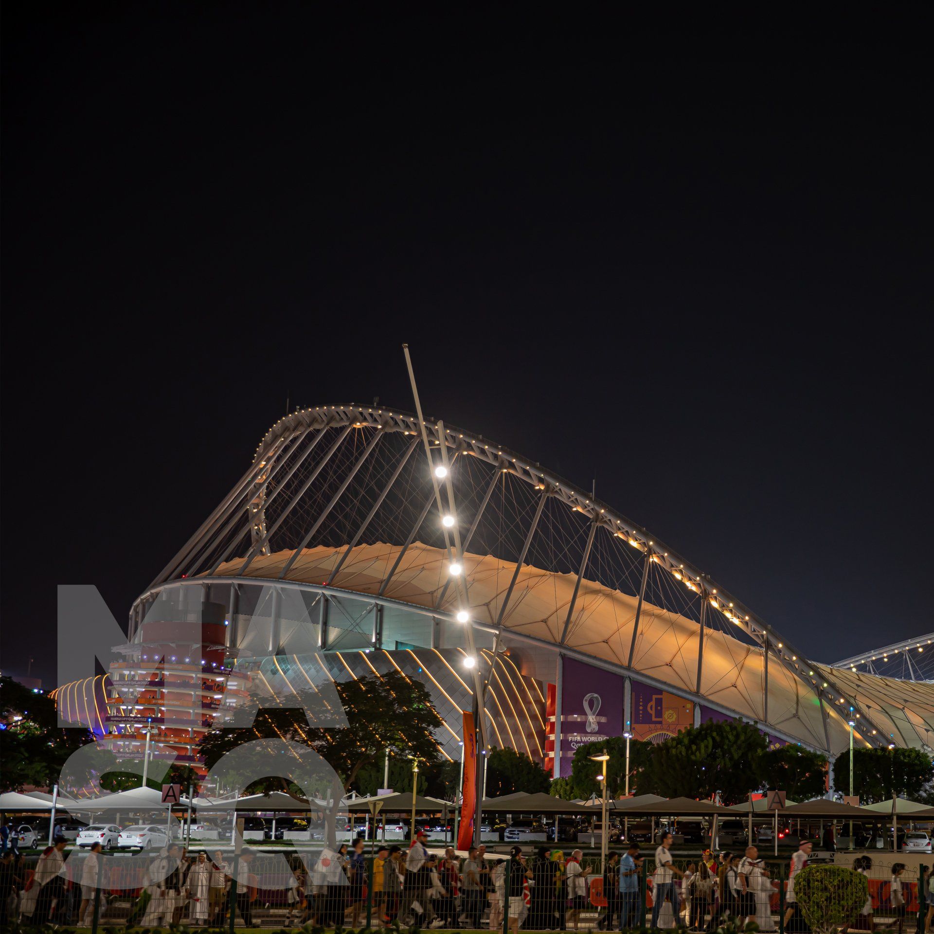 Khalifa International stadium, the oldest and most iconic among all the others in Qatar, received a complete refit for the @fifaworldcup. The magnificent dual arches were always its most recognizable feature. A stretched canopy was added later below these arches and has become another distinguishable feature of the stadium as well.