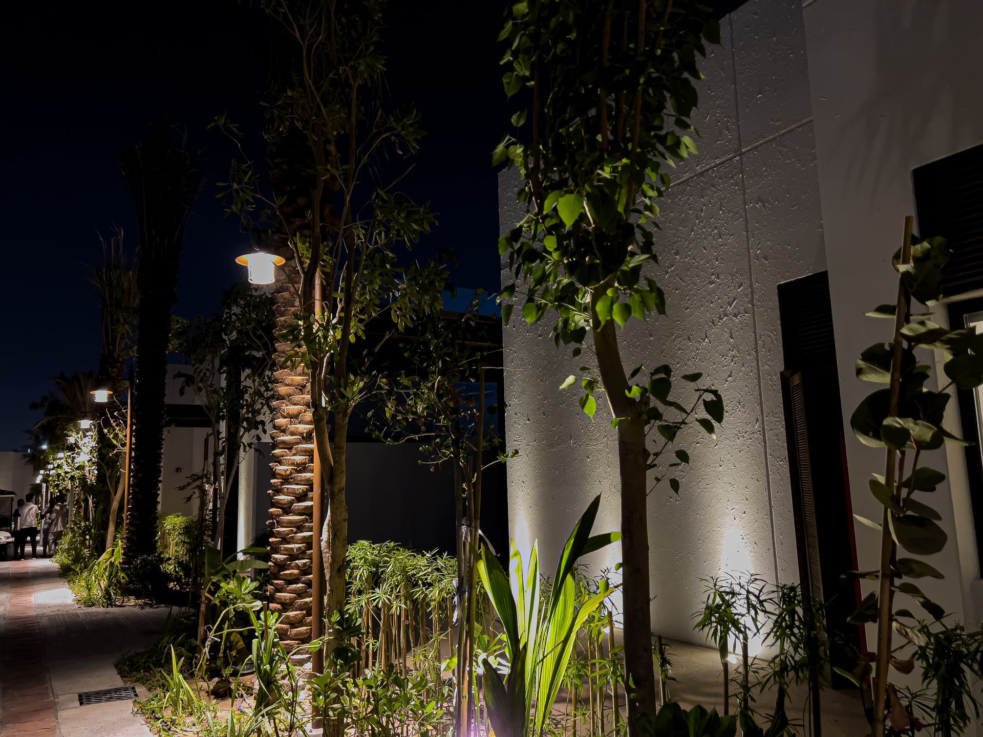 The lighting of the landscape depended on creating a serene ambiance leading the people smoothly across the project. This was achieved by maintaining low levels of light. by embracing this approach, an intimate and enchanting atmosphere that encourages relaxation, enhances natural beauty, and immerses guests into the space showed a unique sensory experience.