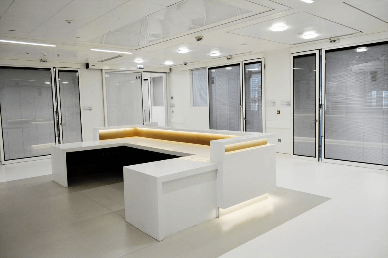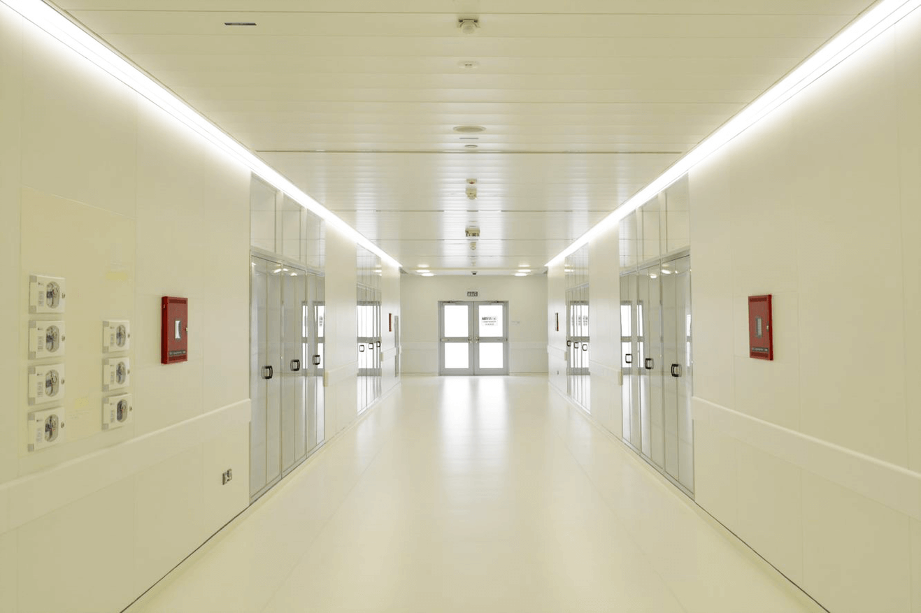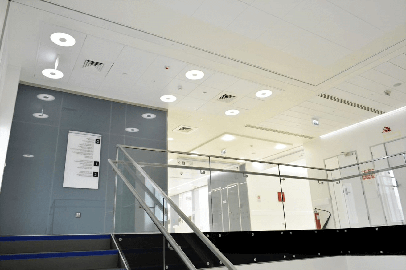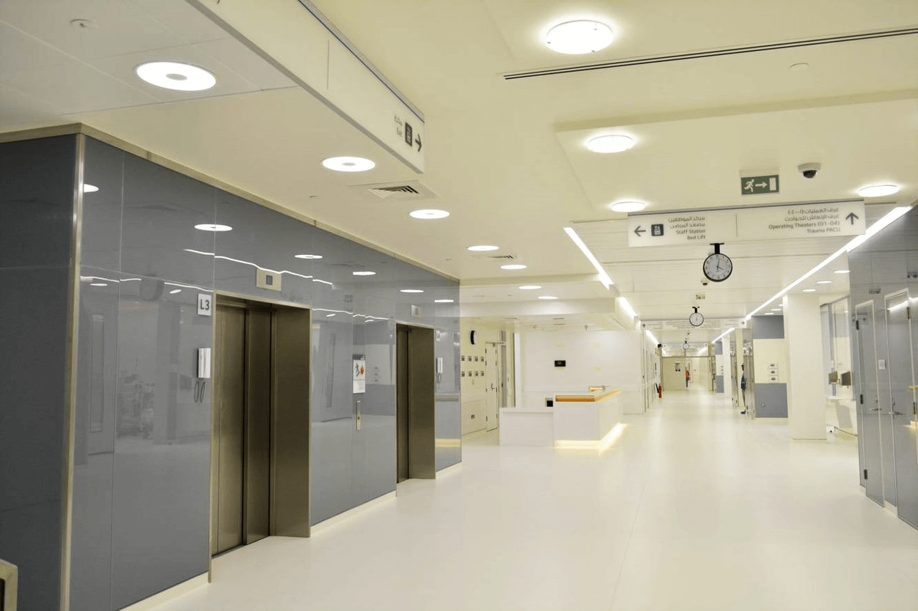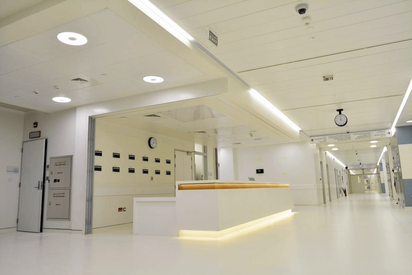 Functional lights were used in all public areas. Linear lights to allow guidance for patients through the corridors and square light panels for the nurse stations.